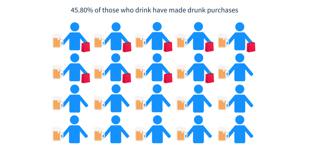 The East Midlands had the lowest number of drunk shoppers and only 45.71% of residents there admitted to doing this. Drunk spending is the most common in London, as 66.80% of Londoners say they have indeed been forking out while under the influence.